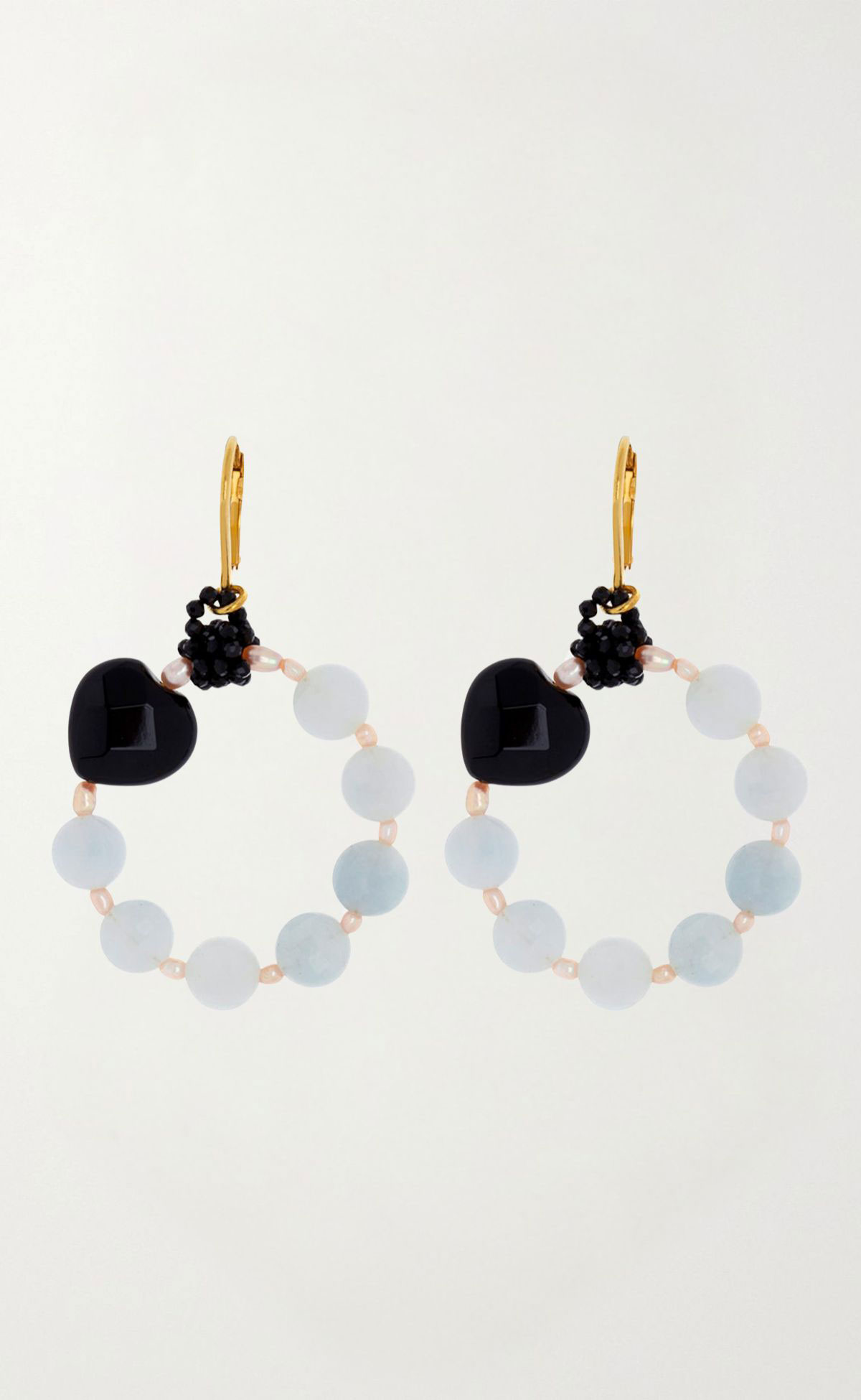 AQUAMARINE EARRINGS WITH FRESH WATER PEARL, ONYX & SPINEL