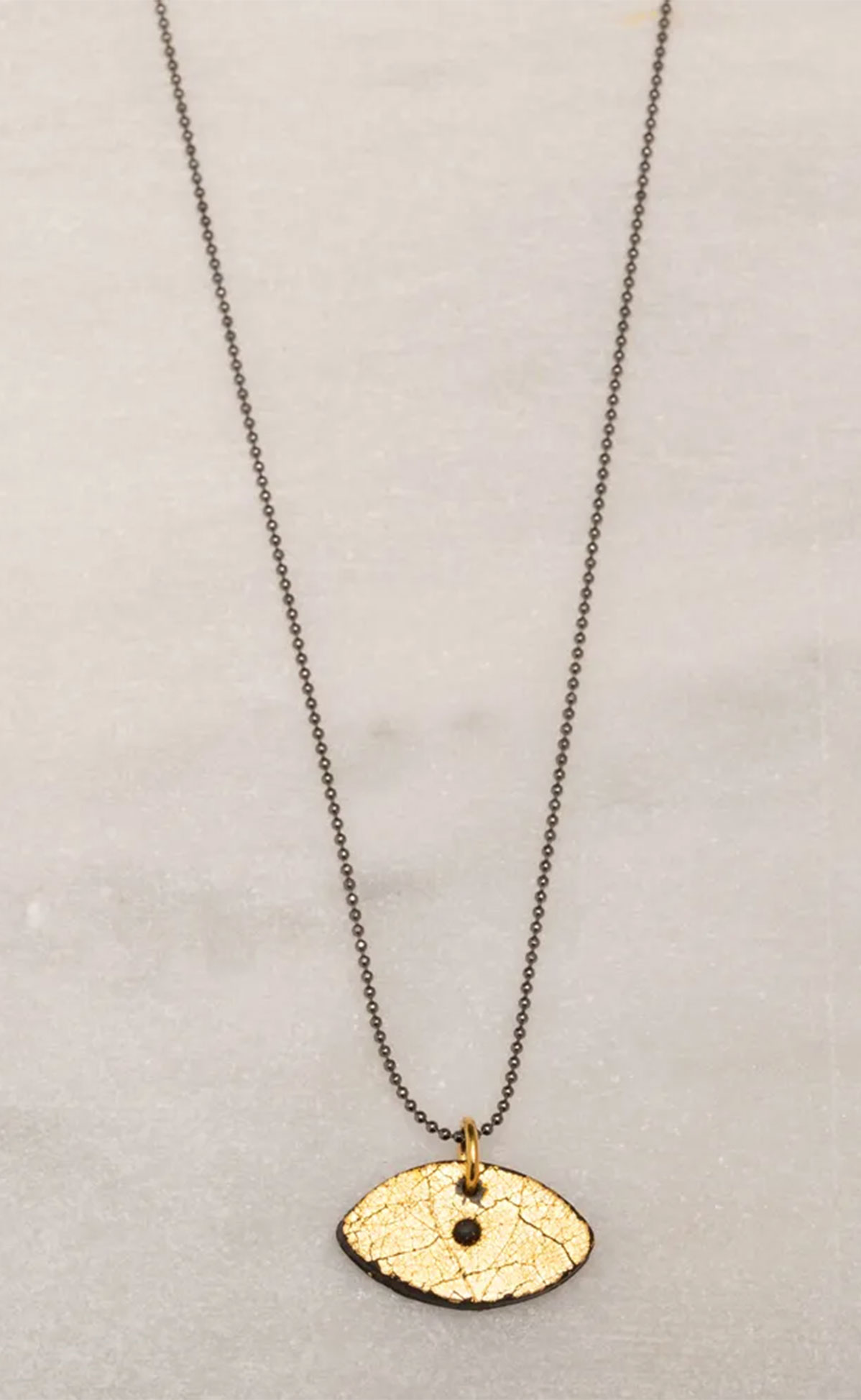 Το κεντρικό στοιχείο αυτού του κολιέ είναι ένα μαγευτικό μενταγιόν σε σχήμα ματιού από χρυσό πολυμερικό πηλό. Το σχέδιο του ματιού δεν προσδίδει μόνο έναν μοναδικό και σύγχρονο χαρακτήρα, αλλά συμβολίζει επίσης την προστασία και την επίγνωση. Πρόκειται για ένα κόσμημα-δήλωση που αναδεικνύει την εμφάνισή σας με μια πινελιά κομψότητας και μια δόση συμβολισμού. Αφήστε το Black Moon Eye Necklace να γίνει μια ουσιαστική και στιλάτη προσθήκη στη συλλογή κοσμημάτων σας.