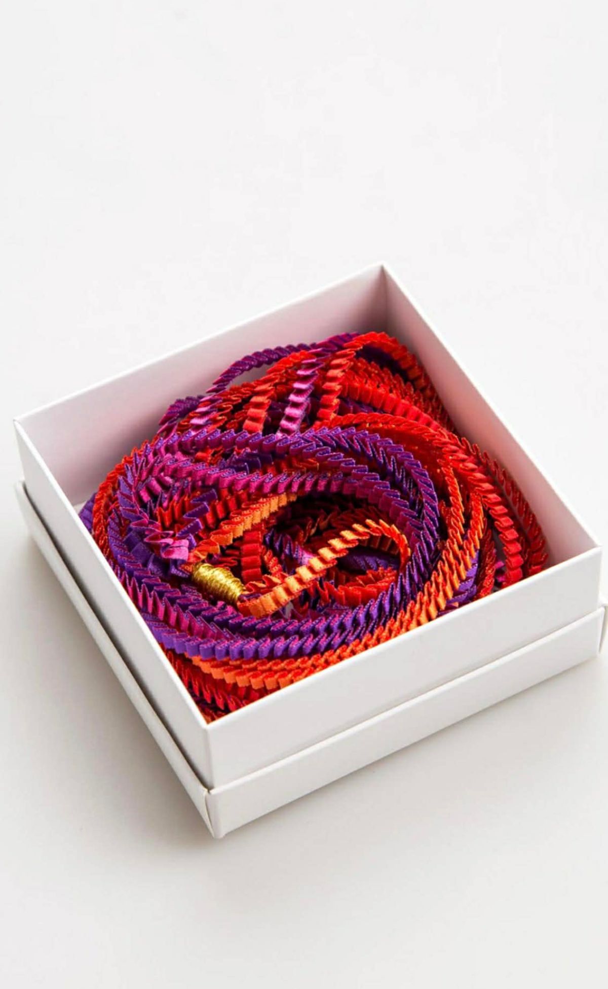 Αυτό το statement κολιέ θα κάνει κάθε σας εμφάνιση μοναδική! Κατασκευάζεται από πλισέ ύφασμα και ο τρόπος που κοσμεί το λαιμό ή το πάνω μέρος του ρούχου ποικίλλει ανάλογα με τους συνδυασμούς χρωμάτων και λάμψης. Είναι πολύ ελαφρύ και δίνει αέρα και στυλ σε κάθε βήμα. Έχει μαγνήτη που κλείνει, καθιστώντας το ένα πολύ ευκολοφόρετο κομμάτι που μπορείτε να συνδυάσετε με τις επίσημες εμφανίσεις σας, στο γραφείο ή με την καθημερινή σας casual εμφάνιση. ΣΥΣΚΕΥΑΣΙΑ ΚΟΛΙΕ: Λευκό κουτάκι από χαρτόνι μέγεθος 9x9x4εκ με αυτοκόλλητη ετικέτα στο καπάκι, με φωτογραφία από λεπτομέρεια του κολιέ τον κωδικό του χρώματος και το όνομά της σχεδιάστριας Αλεξάνδρα Τσουκαλά.