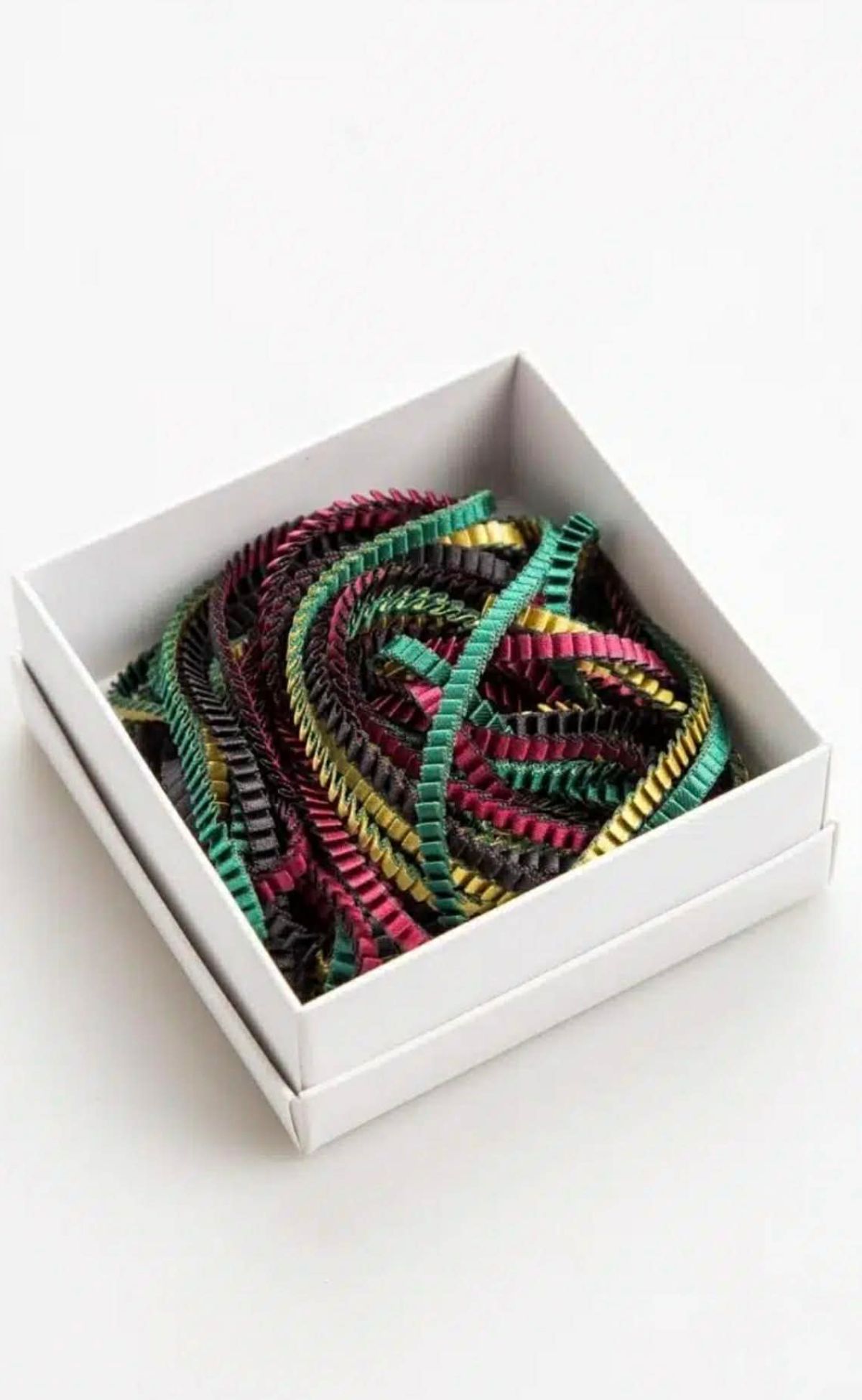 Αυτό το statement κολιέ θα κάνει κάθε σας εμφάνιση μοναδική! Κατασκευάζεται από πλισέ ύφασμα και ο τρόπος που κοσμεί το λαιμό ή το πάνω μέρος του ρούχου ποικίλλει ανάλογα με τους συνδυασμούς χρωμάτων και λάμψης. Είναι πολύ ελαφρύ και δίνει αέρα και στυλ σε κάθε βήμα. Έχει μαγνήτη που κλείνει, καθιστώντας το ένα πολύ ευκολοφόρετο κομμάτι που μπορείτε να συνδυάσετε με τις επίσημες εμφανίσεις σας, στο γραφείο ή με την καθημερινή σας casual εμφάνιση. ΣΥΣΚΕΥΑΣΙΑ ΚΟΛΙΕ: Λευκό κουτάκι από χαρτόνι μέγεθος 9x9x4εκ με αυτοκόλλητη ετικέτα στο καπάκι, με φωτογραφία από λεπτομέρεια του κολιέ τον κωδικό του χρώματος και το όνομά της σχεδιάστριας Αλεξάνδρα Τσουκαλά .