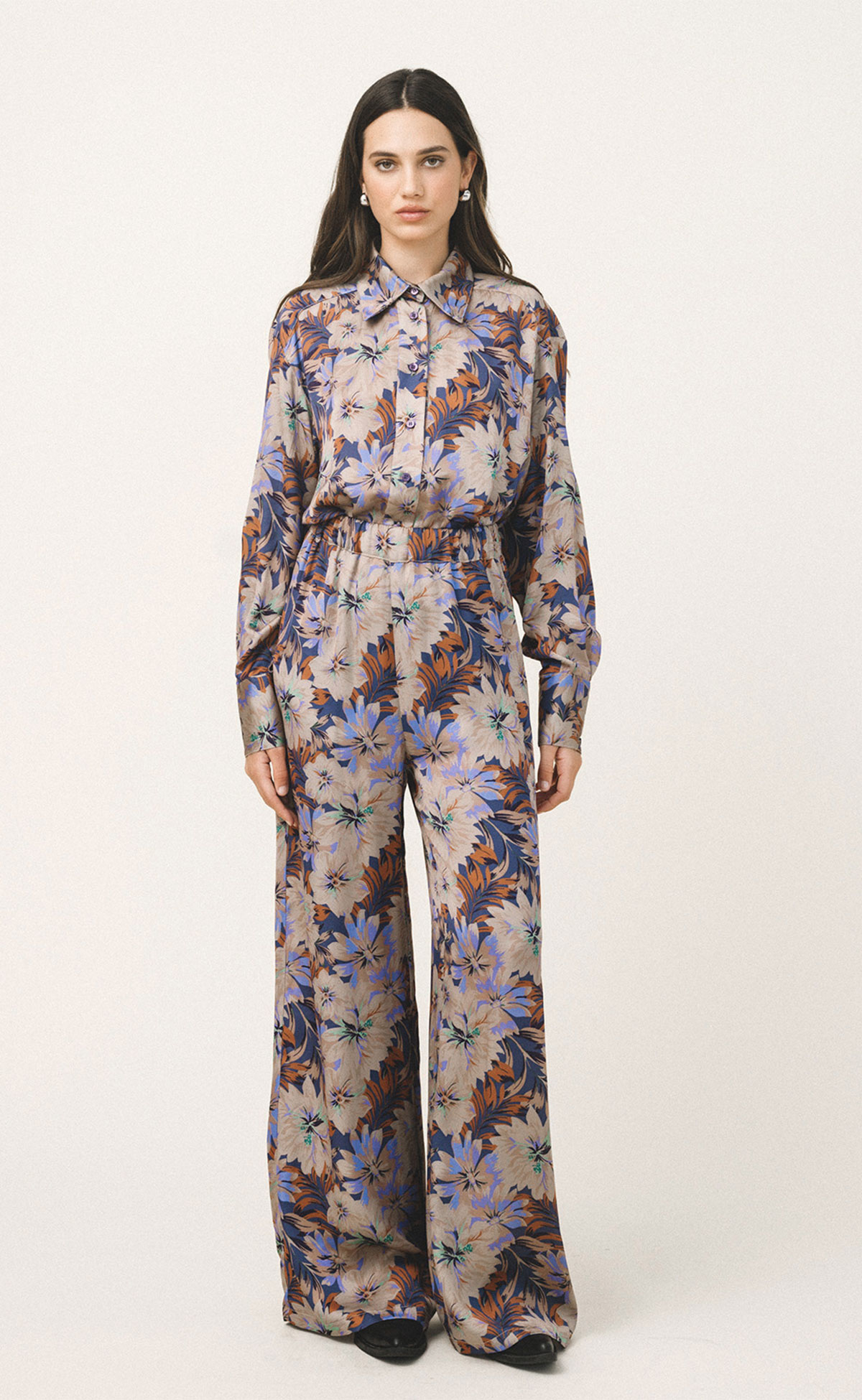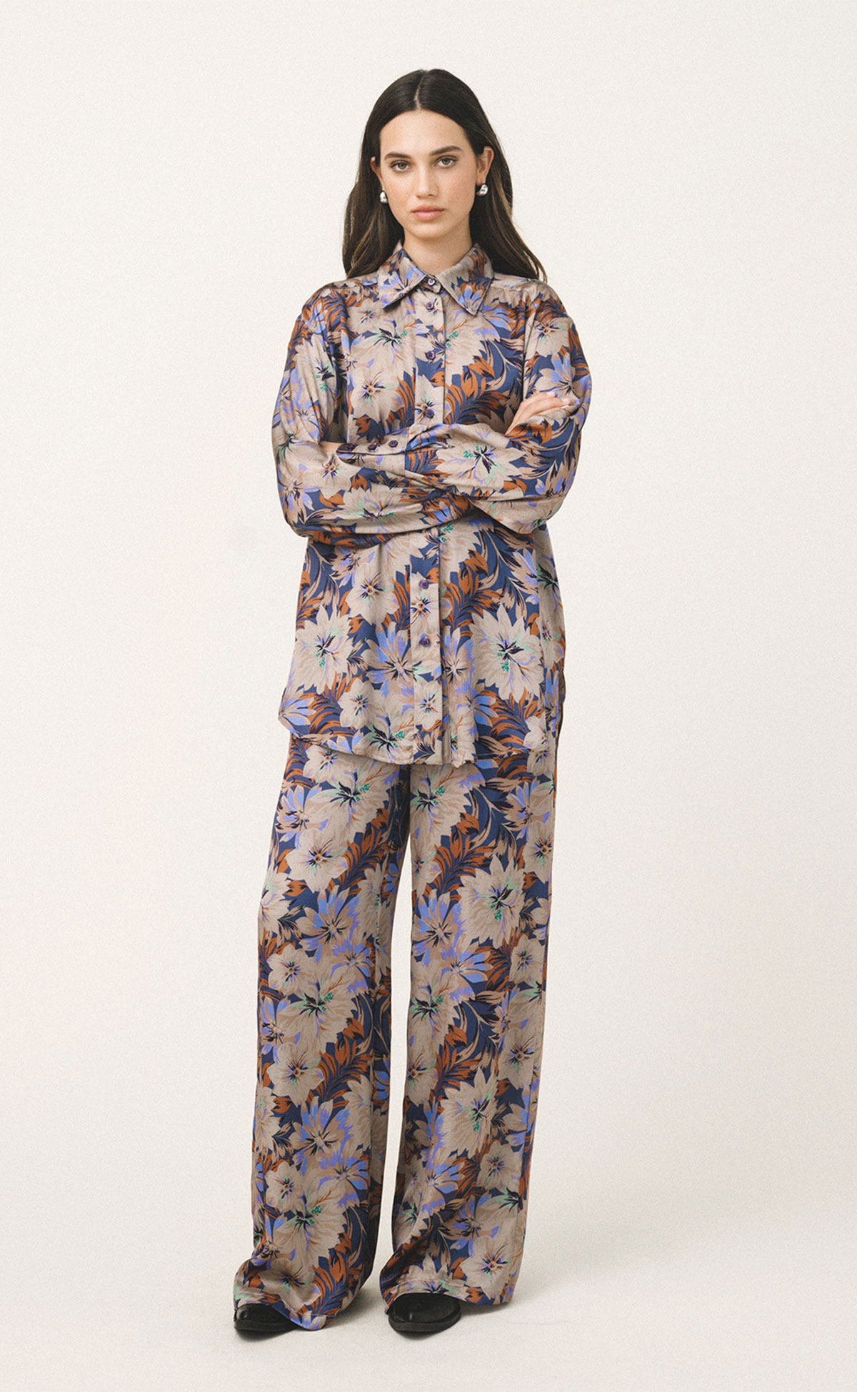 Ελαστική μέσηΦαρδιά γραμμήΧαλαρή εφαρμογήΜεσαία μέσηΑίσθηση μεταξιούΑποκλειστικό print L+AΣυνδυάστε το με το αντίστοιχο πουκάμισο ErisΤο μοντέλο έχει ύψος 173 εκ. και φοράει μέγεθος Small