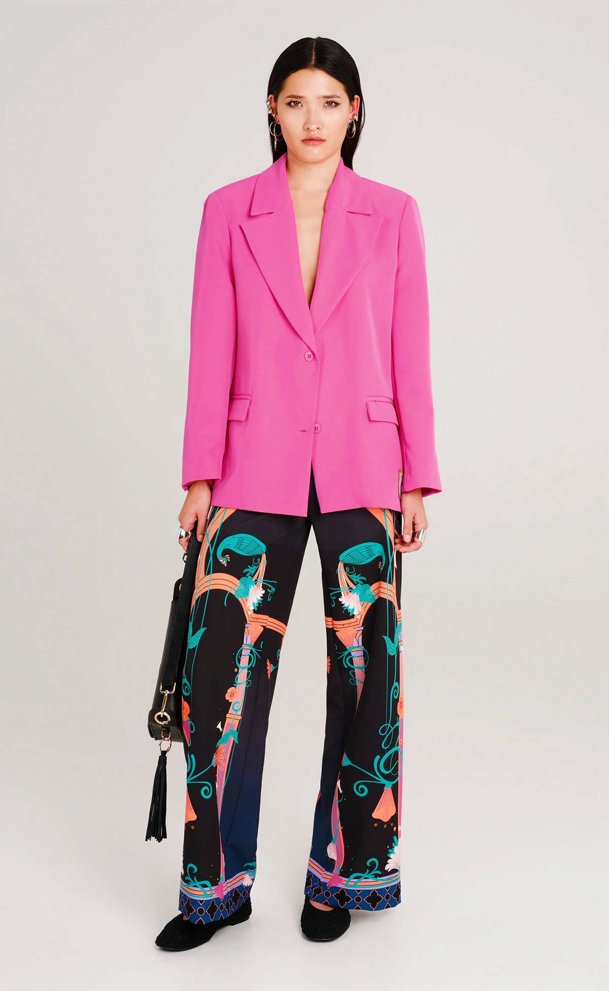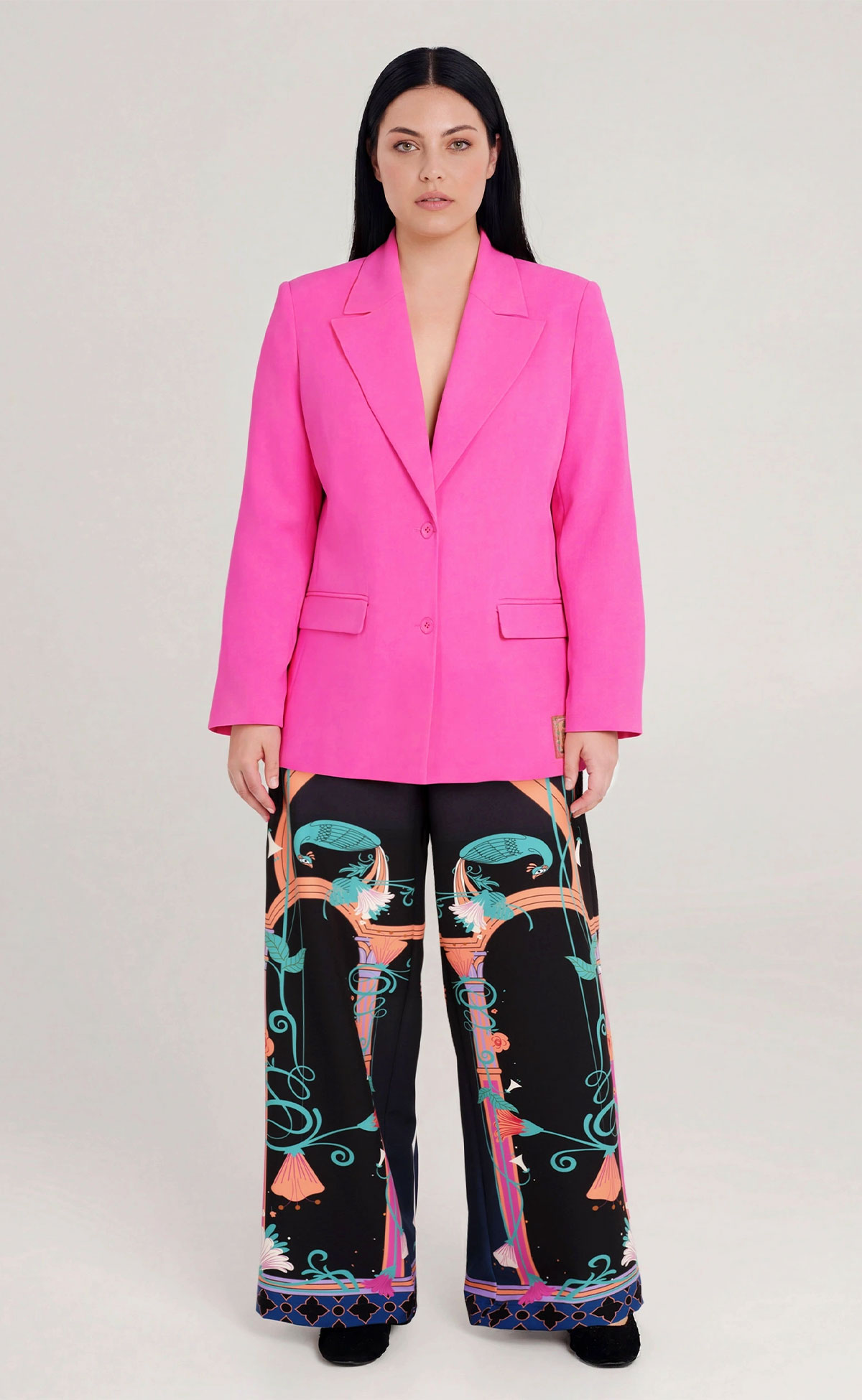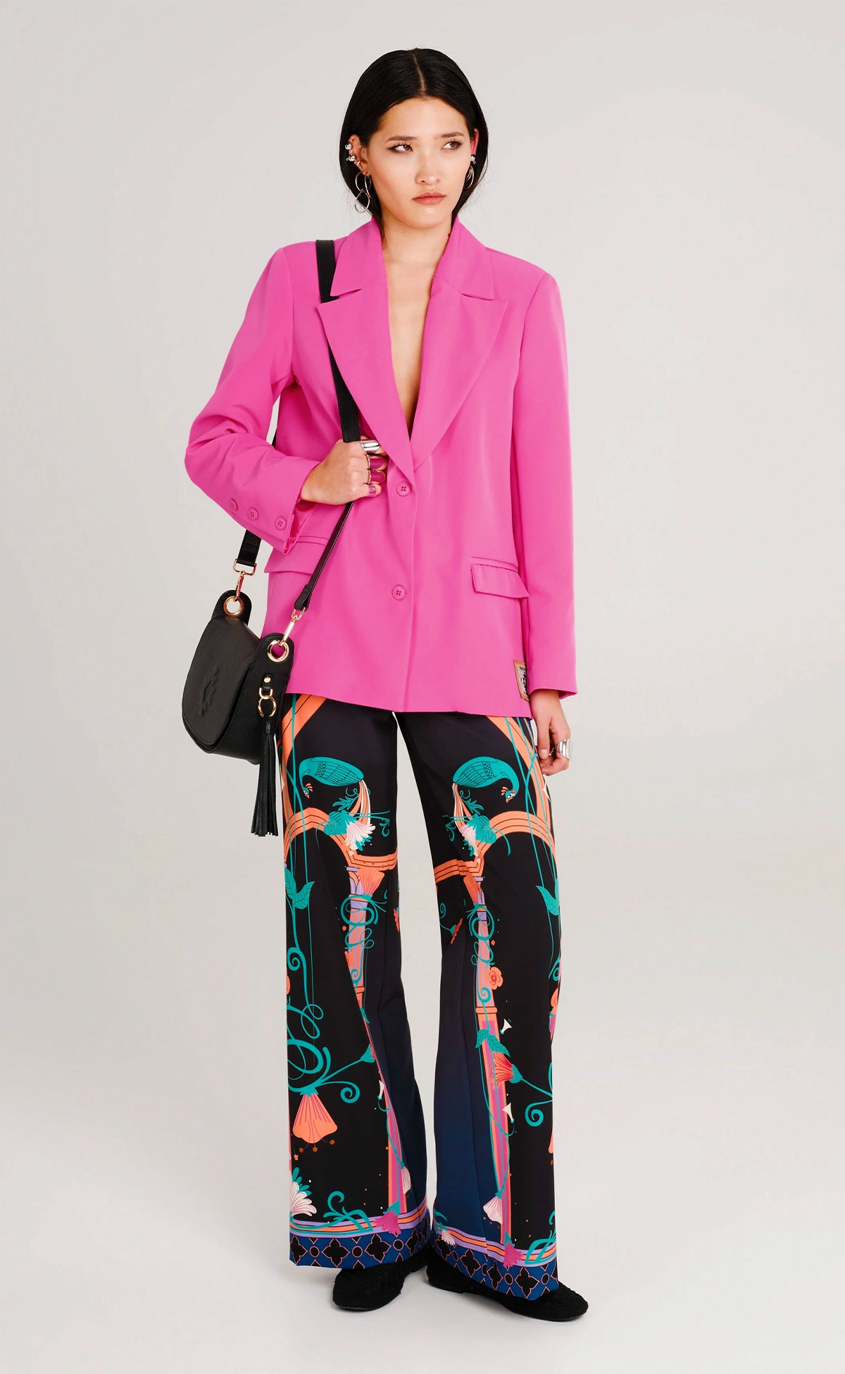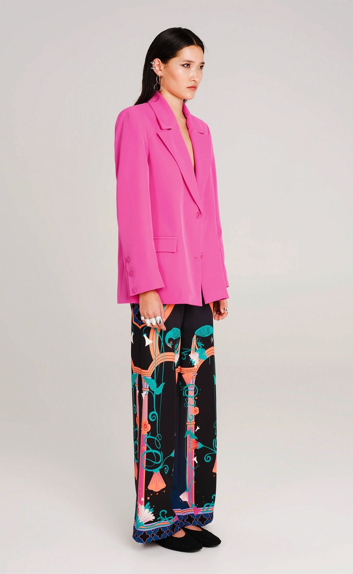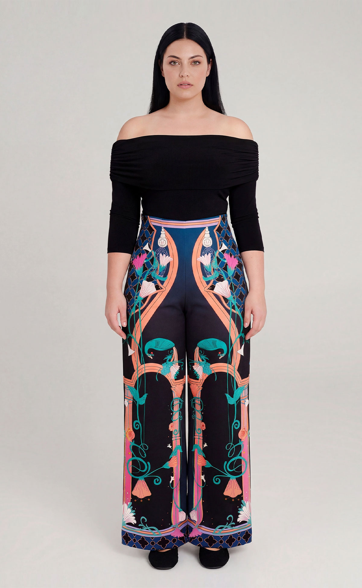 Our Epoque Pants sit high on the waist and fall into a fluid straight-leg. These high-rise trousers have a hidden side zip for a smooth fit over the hip. Their striking placement print features Art Nouveau motifs on a soft ombre background. Colour match yours with an Aesthetic Blazer to go from work to after-hours.