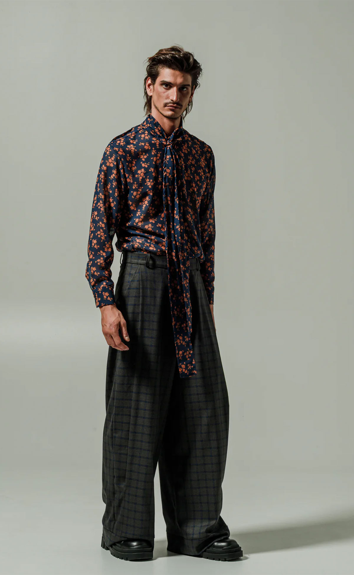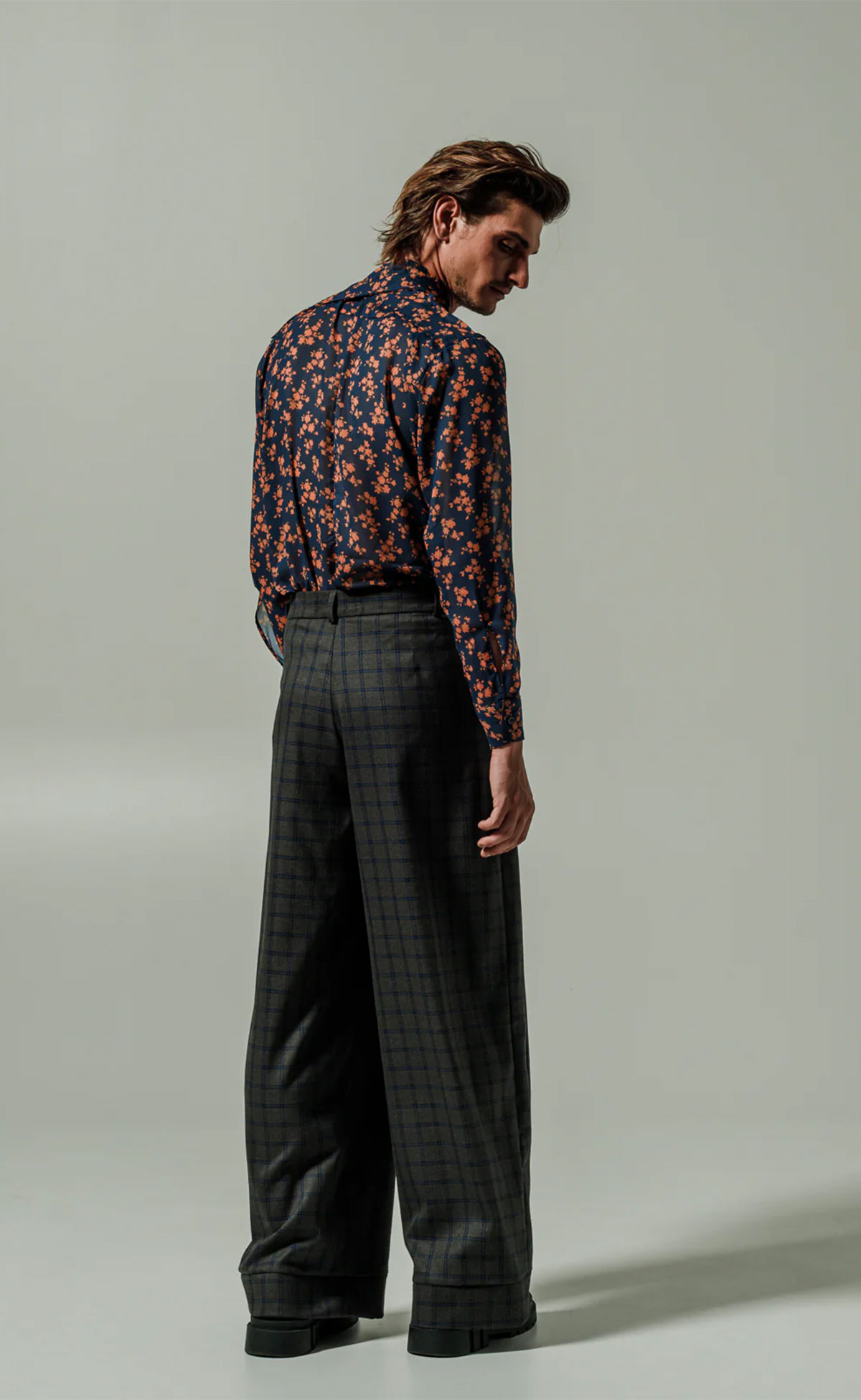 Καρό παντελόνι σε μπλε τόνους με tailored, μοντέρνα γραμμή. Το δομημένο κόψιμο ισορροπεί την κοφτερή κομψότητα με την καθημερινή άνεση. Το μοτίβο του προσθέτει έντονο αλλά ευέλικτο χαρακτήρα. Ένα σύγχρονο κομμάτι που επαναπροσδιορίζει τα κλασικά καρό με εκλεπτυσμένη φινέτσα.