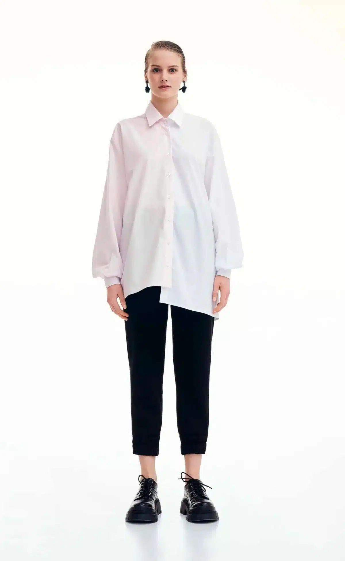 Πουκάμισο από 100% βαμβακερή ποπλίνα. Απαλό και ελαφρύ, το πατρόν του είναι oversized και έχει ασύμμετρο στρίφωμα. Η διχρωμία του σε ροζ και λευκό χαρακτηρίζει την μοναδικότητα κάθε προσωπικότητας ενώ μπορεί να φορεθεί με διαφορετικούς τρόπους. Κλείνει μπροστά με κουμπιά και αποτελεί ένα stylish χειμερινό σχέδιο.