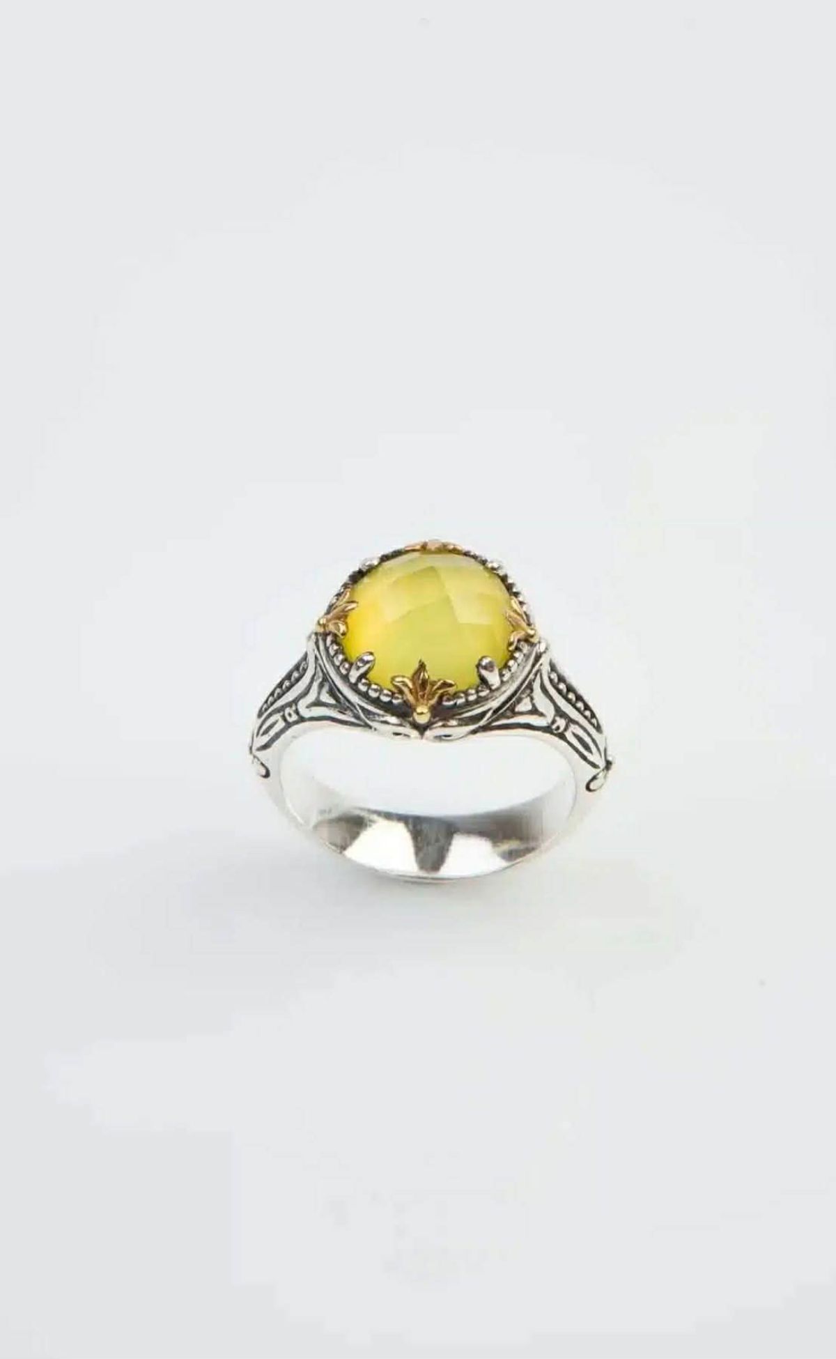 RING WITH ROCK CRYSTAL, YELLOW AGATE & MOP TRIPLET