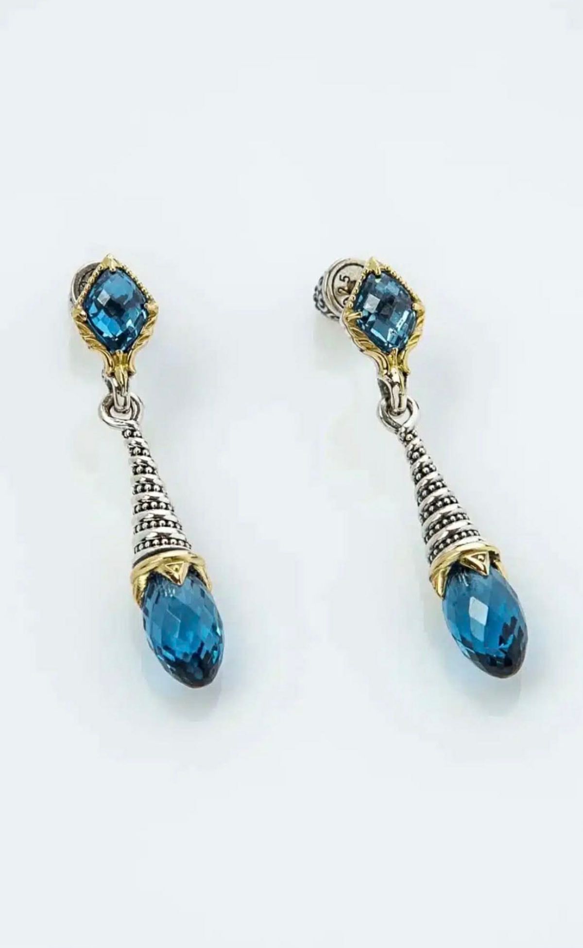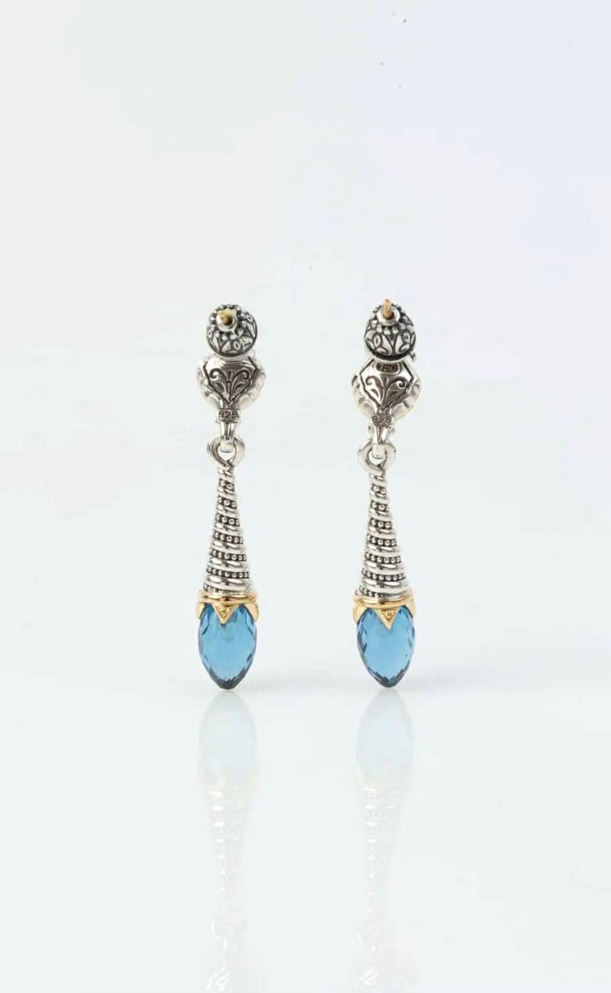ΣΚΟΥΛΑΡΙΚΙΑ ΑΣΗΜΙ 925 & ΧΡΥΣΟ 18k ΜΕ ΜΠΛΕ ΣΠΙΝΕΛΙΟ