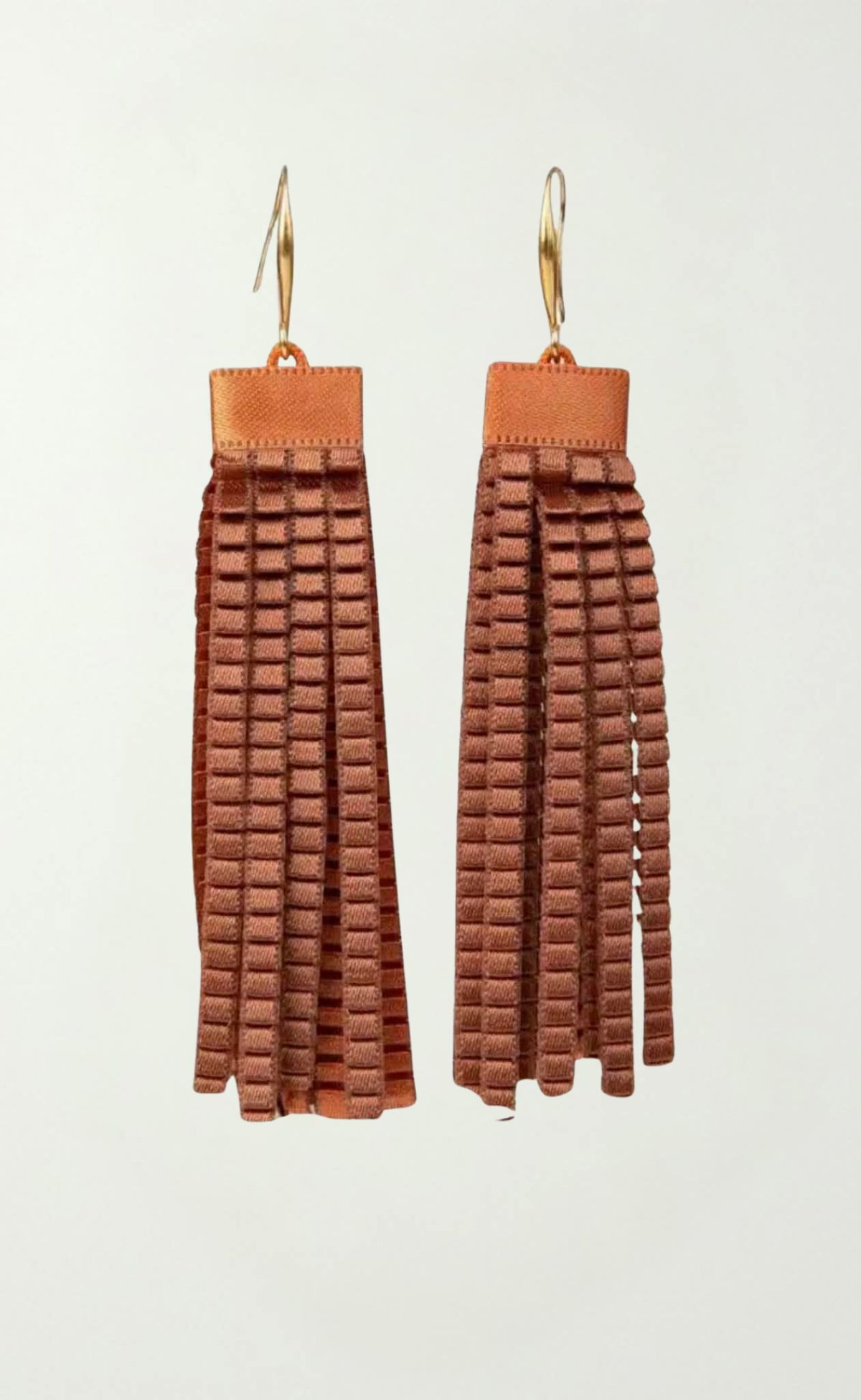 Δώστε μια εντυπωσιακή και παιχνιδιάρικη πινελιά στο ντύσιμό σας με αυτά τα σκουλαρίκια "Esslip" της Αλεξάνδρας Τσουκαλά. Είναι κατασκευασμένα από ύφασμα (συνθετικό μετάξι) με πιέτες σε διάφορα χρώματα, είναι πολύ ελαφριά και αδιάβροχα, προσθέτοντας πόντους στην εμφάνισή σας! ΣΥΣΚΕΥΑΣΙΑ: Μαύρο συρταρωτό κουτάκι από χαρτόνι μέγεθος 8x19,5x2 εκ, με αυτοκόλλητη ετικέτα στο καπάκι και φωτογραφία του σκουλαρικιού , κωδικό χρώματος και το όνομά της σχεδιάστριας Αλεξάνδρας Τσουκαλά.