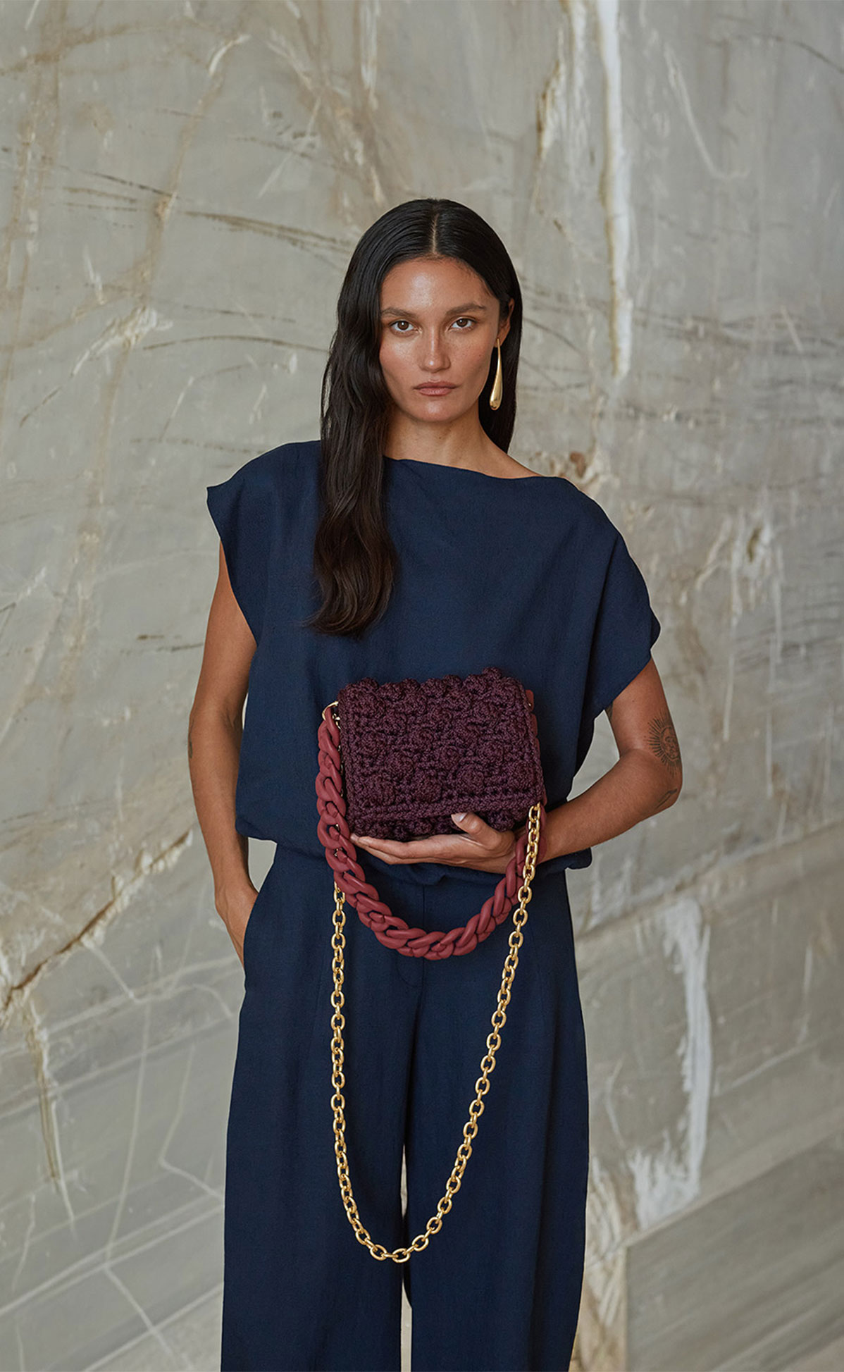 Μια μοντέρνα, μεσαίου μεγέθους τσάντα ώμου που θα σας κάνει να ξεχωρίζετε. Η καλύτερη επιλογή για μια ξεχωριστή εμφάνιση από το πρωί μέχρι το βράδυ. Είναι χειροποίητη από πλεκτό ύφασμα με μεταλλικό νήμα υψηλής ποιότητας και το εσωτερικό της είναι πλήρως επενδεδυμένο.