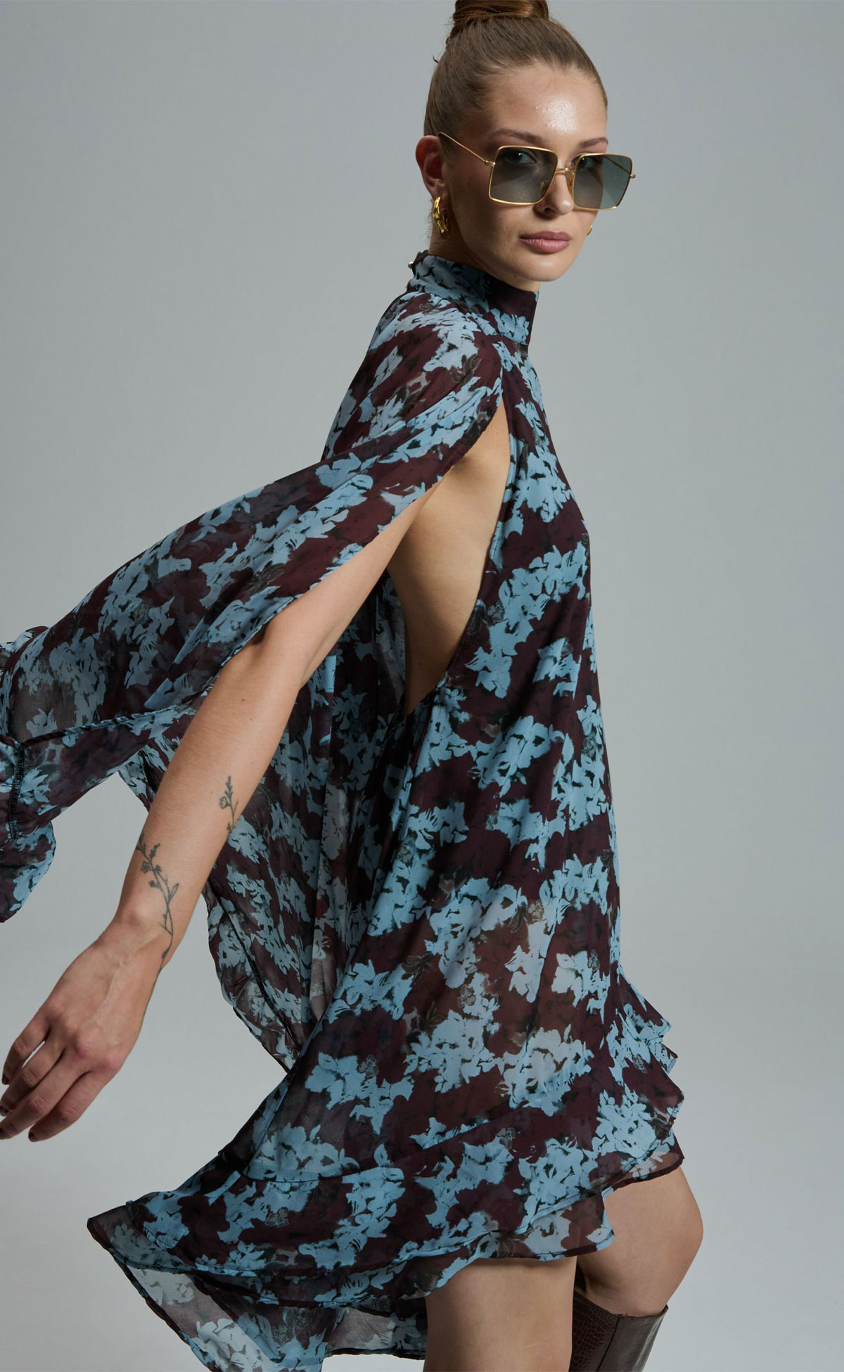 The PROJECT SOMA Adriana Dress is made from airy silk-touch muslin. A midi asymmetric dress with a cape design. Includes an inner black backless bodysuit. Maribel is 1,78m and wears S/MBUST: 81cm - WAIST:60cm - HIPS: 90cm