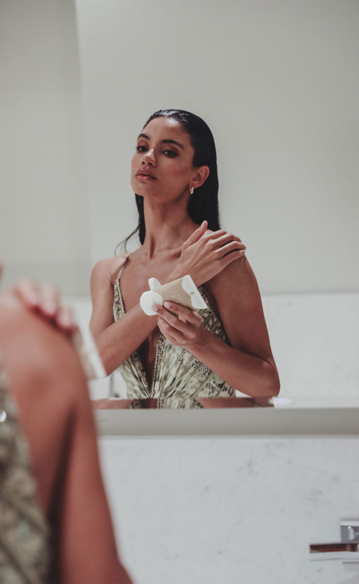 Crafted with utmost care and boasting timeless appeal, the Brehat bikini set seamlessly combines a bikini top with underwire cups and a classic bottom. The bikini bottom has a low rise, providing modest coverage, while the balconette-style bikini top is enhanced by elegant wide shoulder straps that are delicately sewn at the back, complemented by a matte finish-gold clasp. Both pieces are fully lined and made from French Jacquard 90% Polyamide & 10% Elastane.This bikini set is true to size and fits exactly as expected.We recommend you to handwash it in cold water.Made in Greece