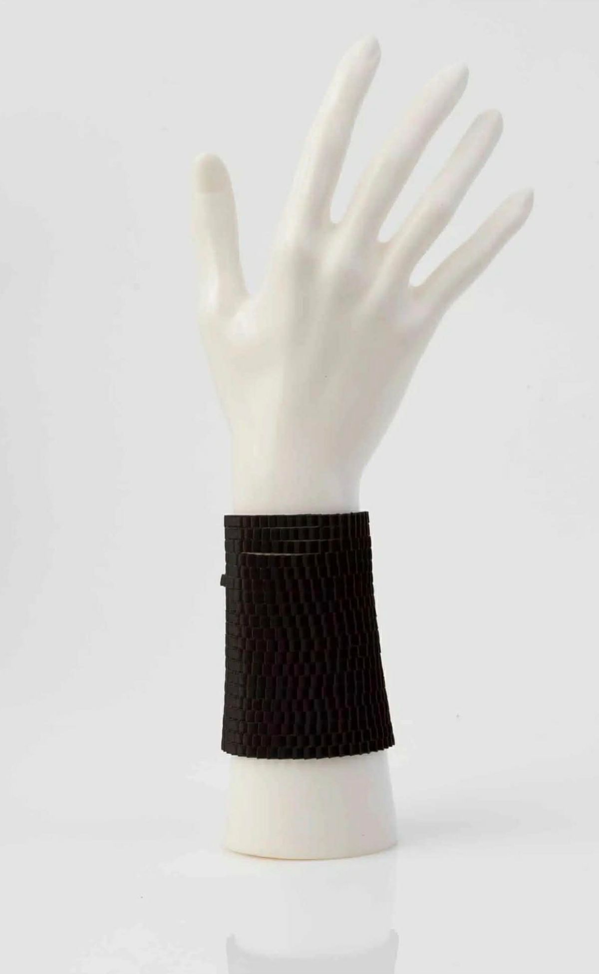 This eccentric bracelet promises unique looks inspired by art and architecture, making every look special, whether it's an event at the office or a simple everyday walk with a casual outfit. It is made of synthetic silk, a waterproof and elastic fabric to withstand time while giving the necessary shine that we ask for in our jewelry. PACKAGING: Black-White cardboard drawer box size 13X11X2 cm, with a sticker on the lid and a photo of the bracelet, color code, and the name of the designer Alexandra Tsoukala.