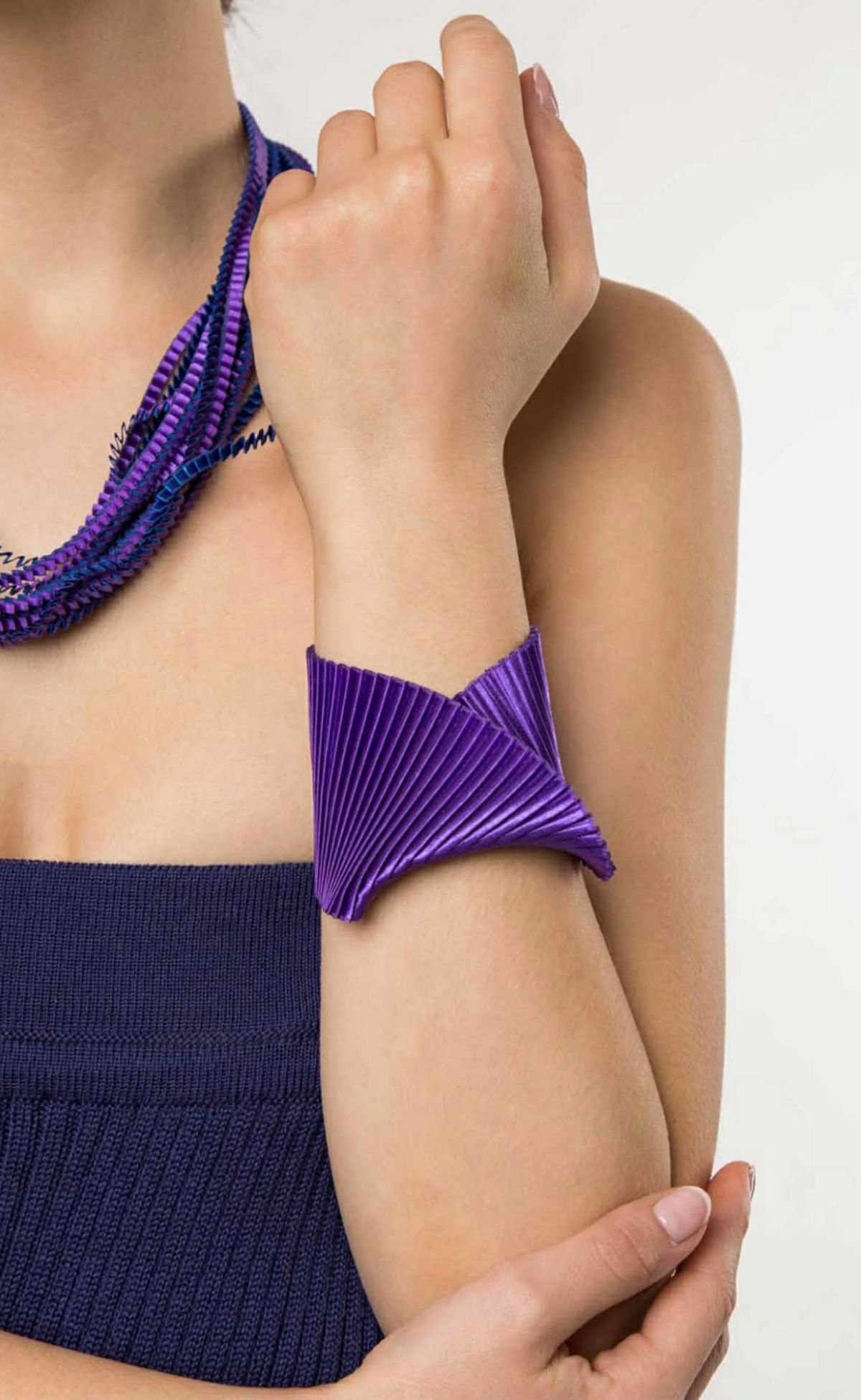 This eccentric bracelet promises unique looks inspired by art and architecture, making every look special, whether it's an event at the office or a simple everyday walk with a casual outfit. It is made of synthetic silk, a waterproof and elastic fabric to withstand time while giving the necessary shine that we ask for in our jewelry.Packaging: Black & White, paper drawer sliding box, 11x13x2cm. On its lid, there is a photo of the bracelet, its color code number, and the name of the designer.