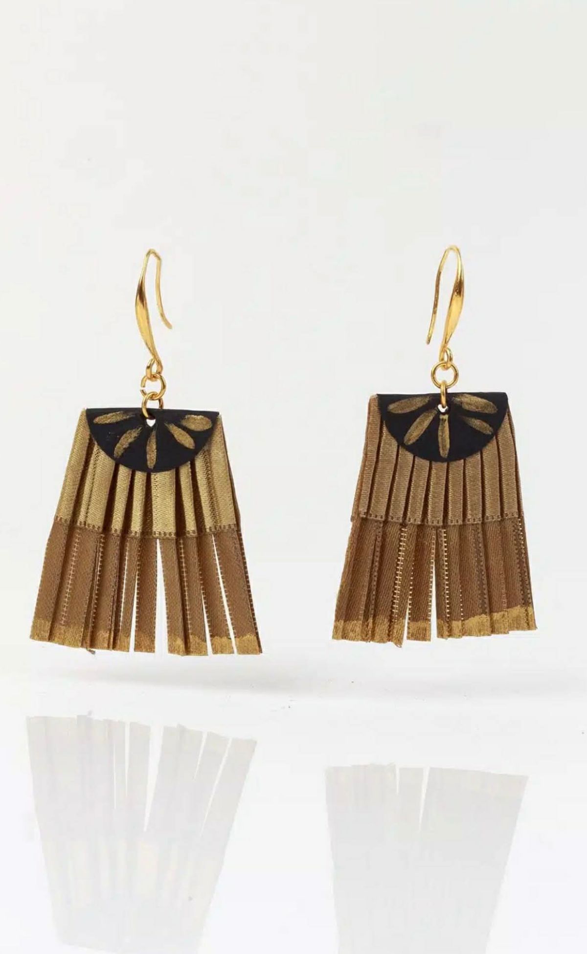 Give an impressive and playful touch to your outfits with these "Scallop" earrings by Alexandra Tsoukala. They are made of fabric (synthetic silk) with pleats in various colors, they are very light and waterproof, adding bonus points to your look!Packaging: Black & White paper drawer sliding box 11x13x2cm. On its lid there is a photo of the earrings, the color code number and the name of the designer Alexandra Tsoukala.