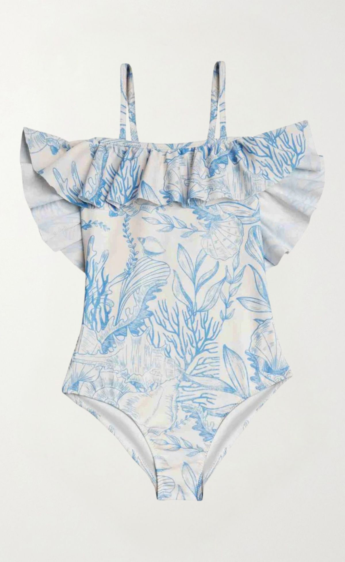 GIRLS ONE PIECE RUFFLED THALASSA BLUE