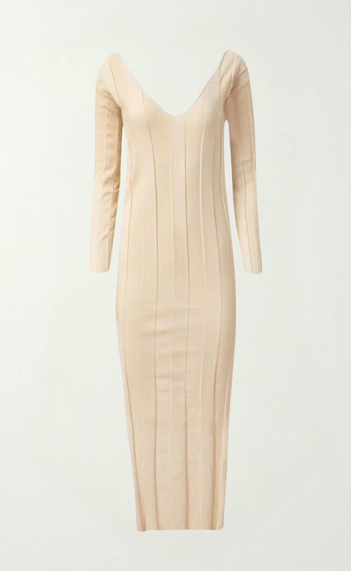 Elegant ecru knit dress featuring a wide rib pattern. Comfortable, flattering, and versatile, perfect for both casual and dressy occasions.