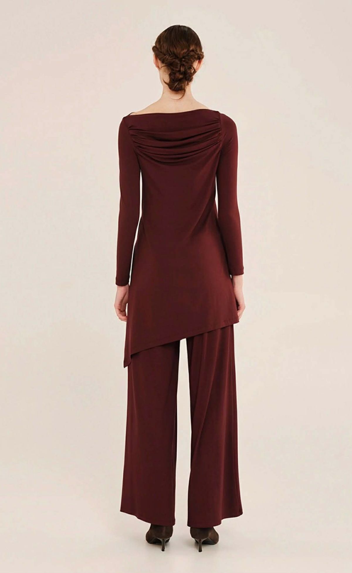 Long trousers made from stretchy LENZING™ ECOVERO™ viscose. They feature an elasticated waistband and a relaxed, wide-leg fit. A versatile piece that pairs effortlessly with the collection’s tops for comfortable everyday looks.
