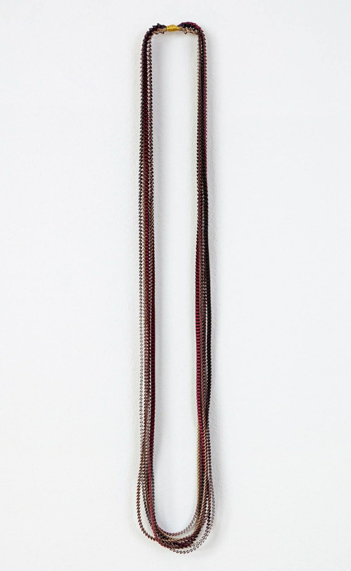 This statement necklace will make every look unique! It is made of pleated fabric and the way it adorns the neck or the top of the garment varies depending on the combinations of colours and shine. It is very lightweight giving air and style to every step. It has a magnet that closes, making it a very easy-to-wear piece that you can combine with your dressy looks, in the office, or with your everyday casual look. NECKLACE PACKAGING: White cardboard box size 9x9x4cm with a self-adhesive label on the lid, with a photo of a detail of the necklace, the color code and the name of the designer Alexandra Tsoukala.