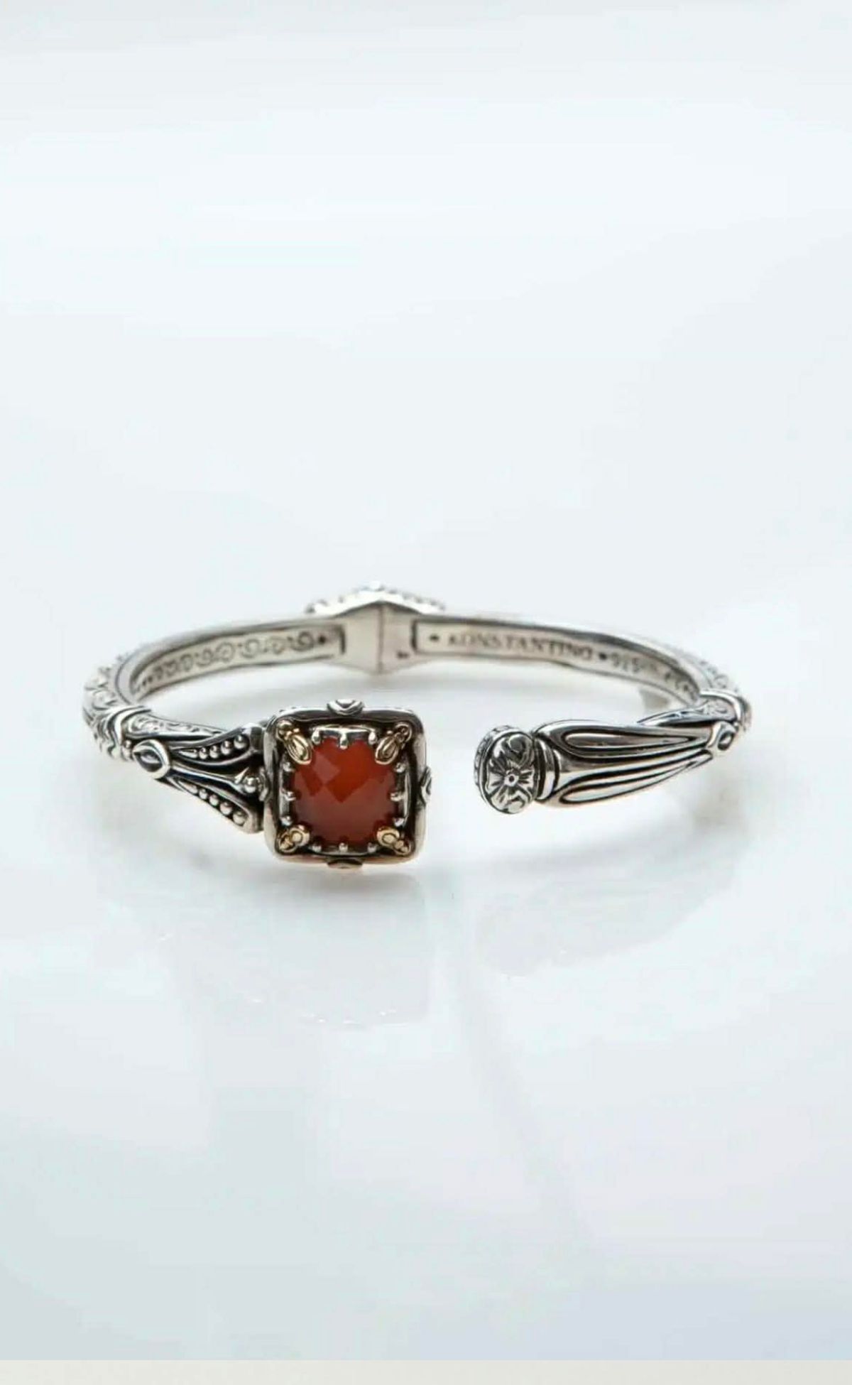 Do you want a splash of sleek reddish-orange to enhance your look? If yes, this sterling silver and 18K yellow gold unique bracelet from the ”Gen K” collection of KONSTANTINOS is perfect for you. The beaded and carved details lend an intricate aesthetic to this bracelet highlighted by a magnificent rich orange carnelian doublet. The ancient Greeks used this gem for its spiritual and healing powers, associating it with inspiration, motivation, courage, and ambition, so don’t forget to wear it with confidence to create the perfect colorful outfit!