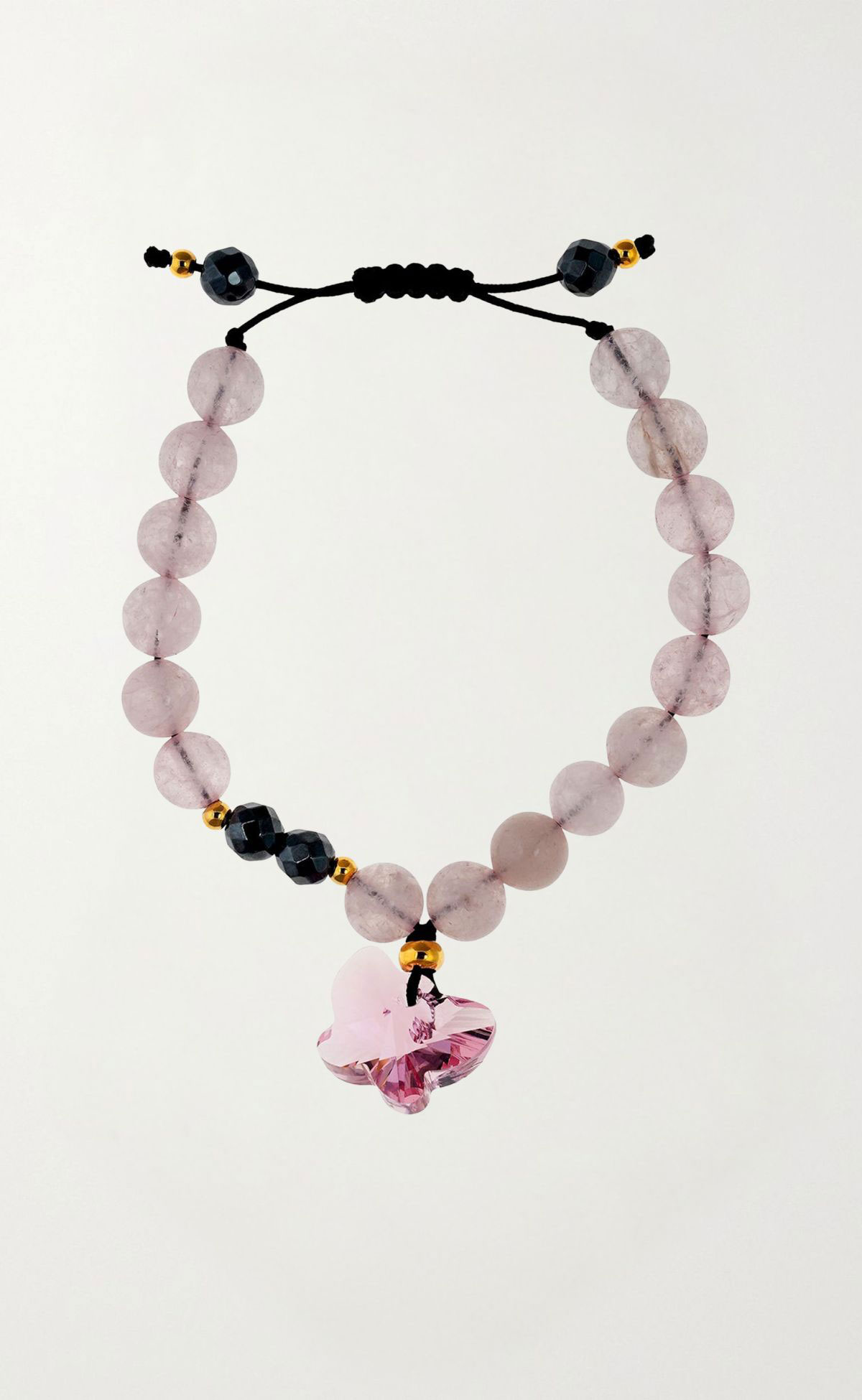 PINK QUARTZ & HEMATITE BRACELET WITH SWAROVSKI