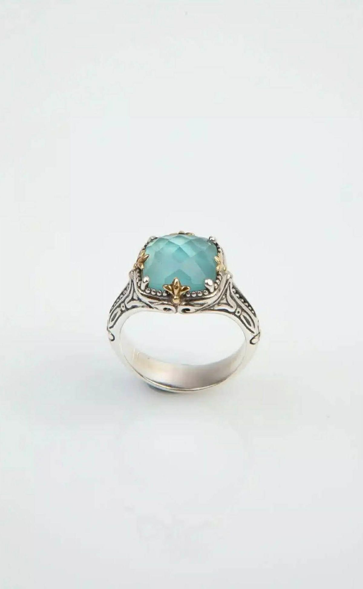 RING WITH ROCK CRYSTAL, AQUA & MOP TRIPLET