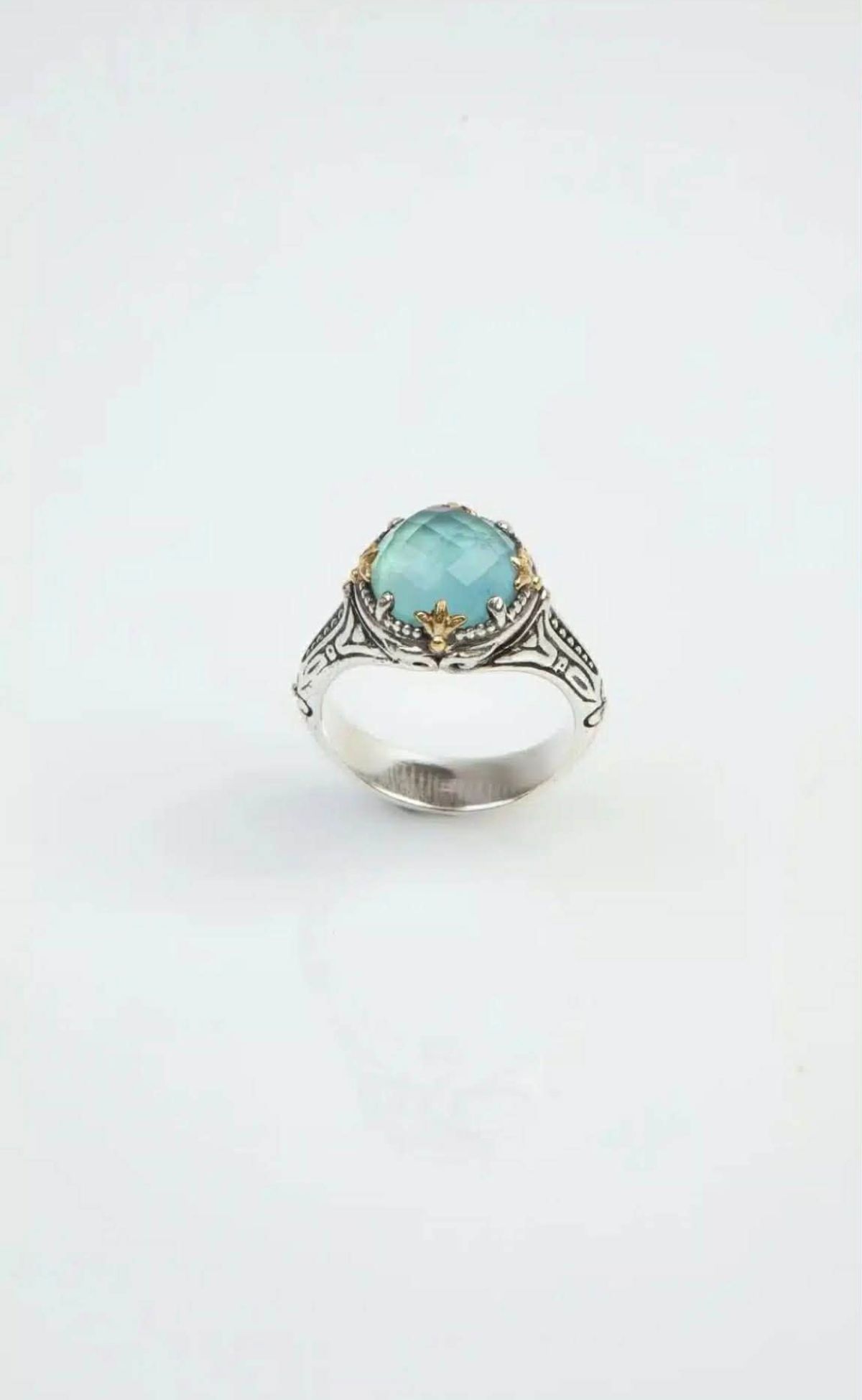 RING WITH ROCK CRYSTAL, AQUA & MOP TRIPLET