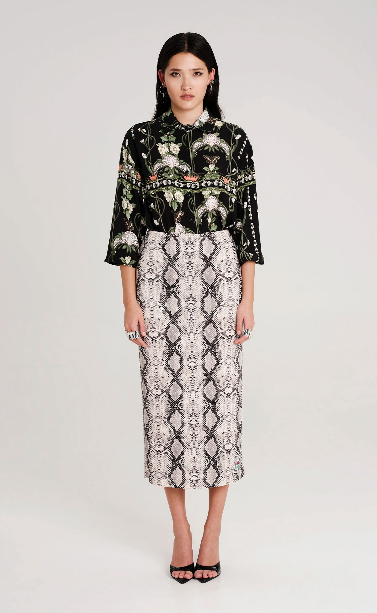 Με ένα εξωτικό τύπωμα σε όλη την επιφάνεια σε απαλό, ελαστικό ζέρσεϊ, η φούστα μας Serpentine Midi συνδυάζει κομψότητα και άνεση. Αυτή η ελαστική ίσια μίντι φούστα έχει σχισμή στην πλάτη για εύκολη κίνηση και ελαστική μέση για εύκολη εφαρμογή - και μια ειδική υφασμένη ετικέτα σε στυλ γραμματοσήμου με βοτανικά φυτά για να προσθέσει μια χαρακτηριστική πινελιά P+C. Σε ένα ευέλικτο ουδέτερο χρώμα, αυτή η μίντι φούστα ισορροπεί με έντονα κομμάτια όπως πουλόβερ Wisdom και μπλουζάκια Avian.