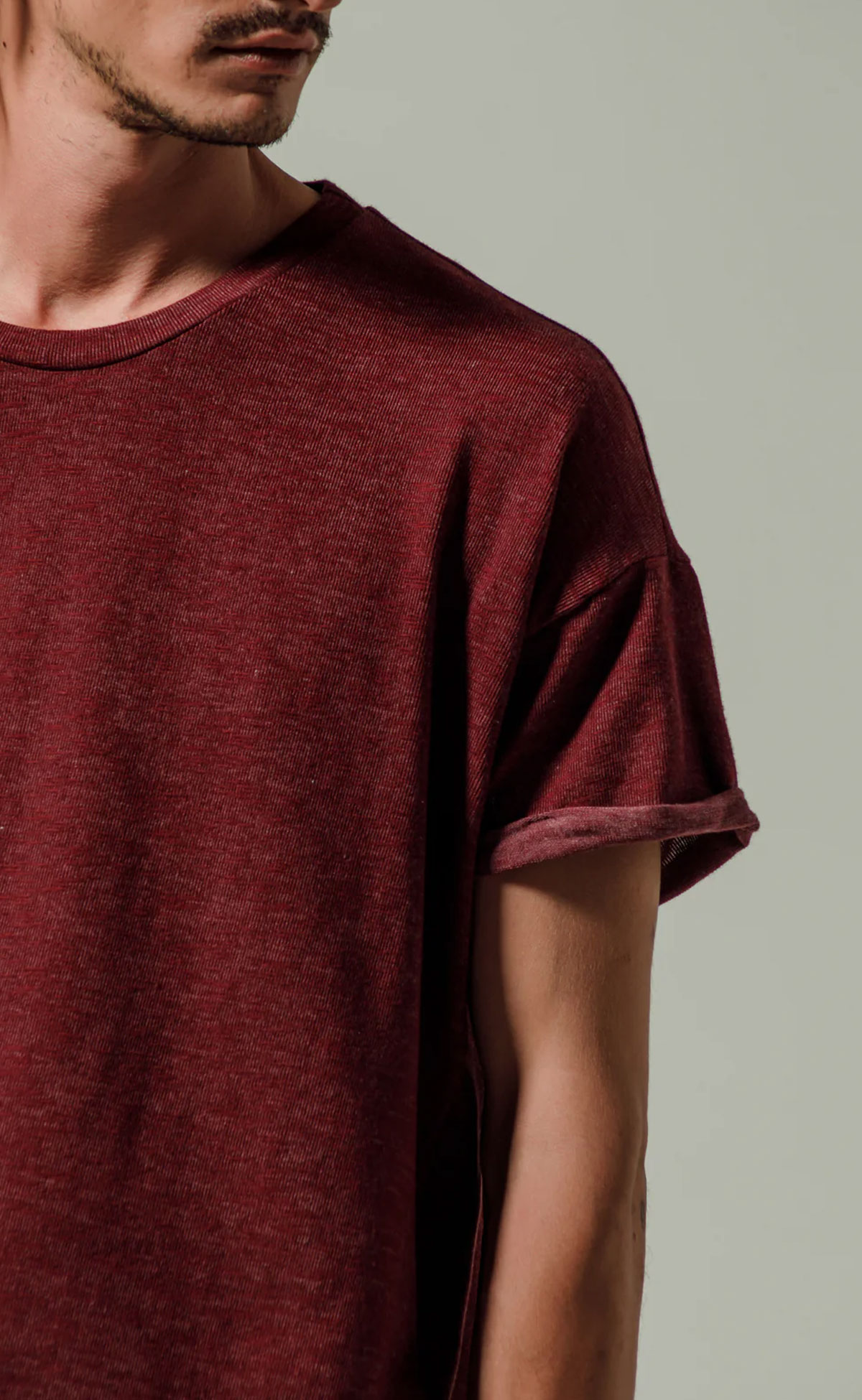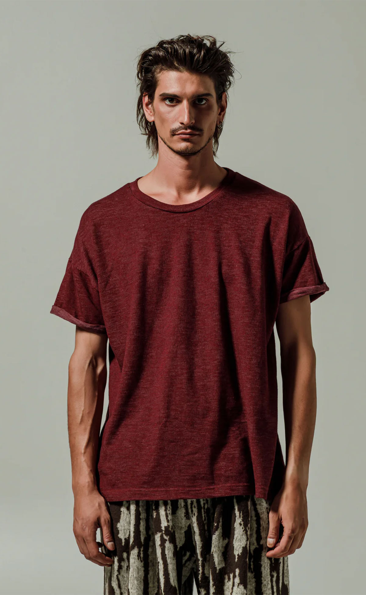 A bordeaux T-shirt with a clean, boxy silhouette. Crafted from soft cotton, it offers comfort with refined simplicity. The minimal design makes it versatile across casual and elevated looks. A timeless essential that embodies modern, understated style.