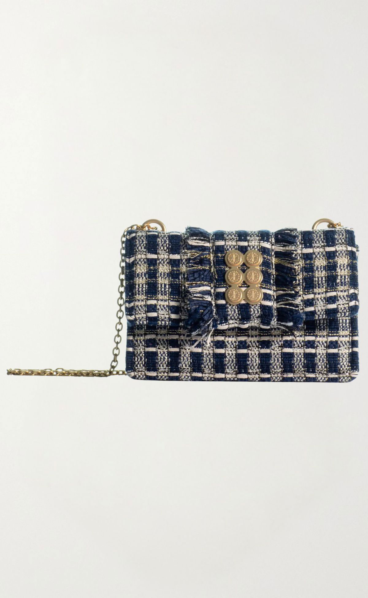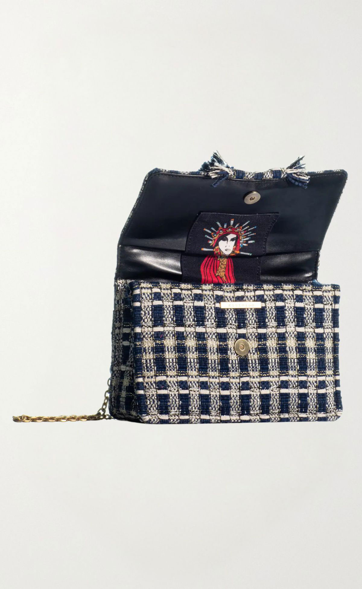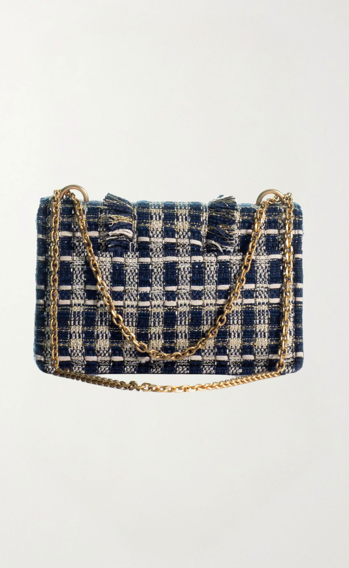 The Tweed LucerneBlue / gold tweedGold-tone metal chain Kooreloo's trademark lining with goddess AthenaAdorned with Kooreloo's signature metal emblemComes with branded pouch